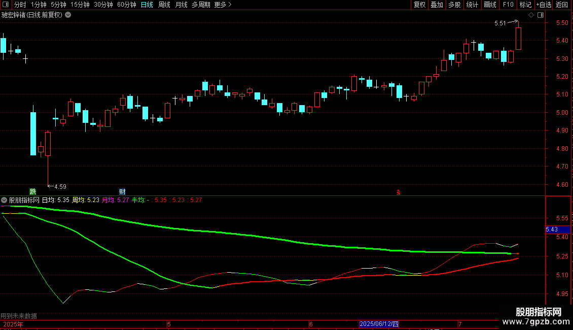 反转:=C>日均 AND 周均>月均 AND 月均>REF(月均,1);