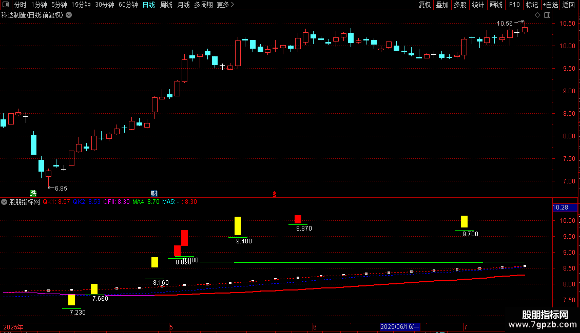 红马甲:STICKLINE(C>REF(C,1)*1.095 AND C=H,C,O,1.5,0),COLORRED;