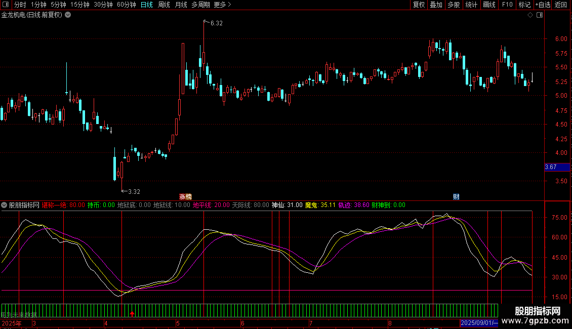 堪称一绝:IF(REF(TJ,1)=0 AND TJ>=1,80,10),STICK,COLORRED;