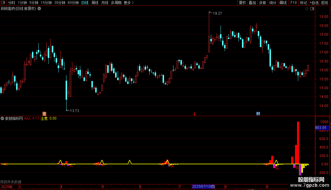 注意: IF(CROSS(J,3),95,0),COLORYELLOW,LINETHICK2;
