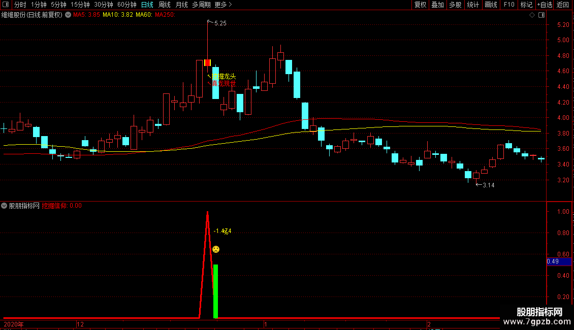 DRAWTEXT(龙头信号,L*0.99,'↖挖掘龙头'),COLOR00FFFF;