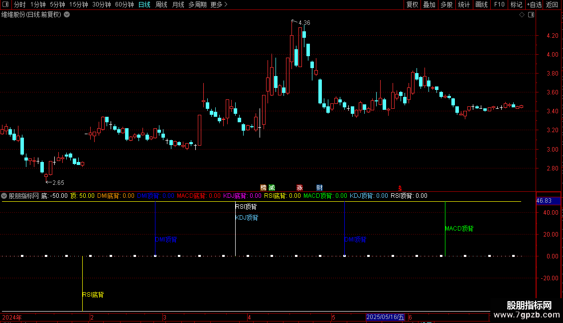 RSI顶背:IF(D3>0,50,0),COLORFFFFFF,POINTDOT;