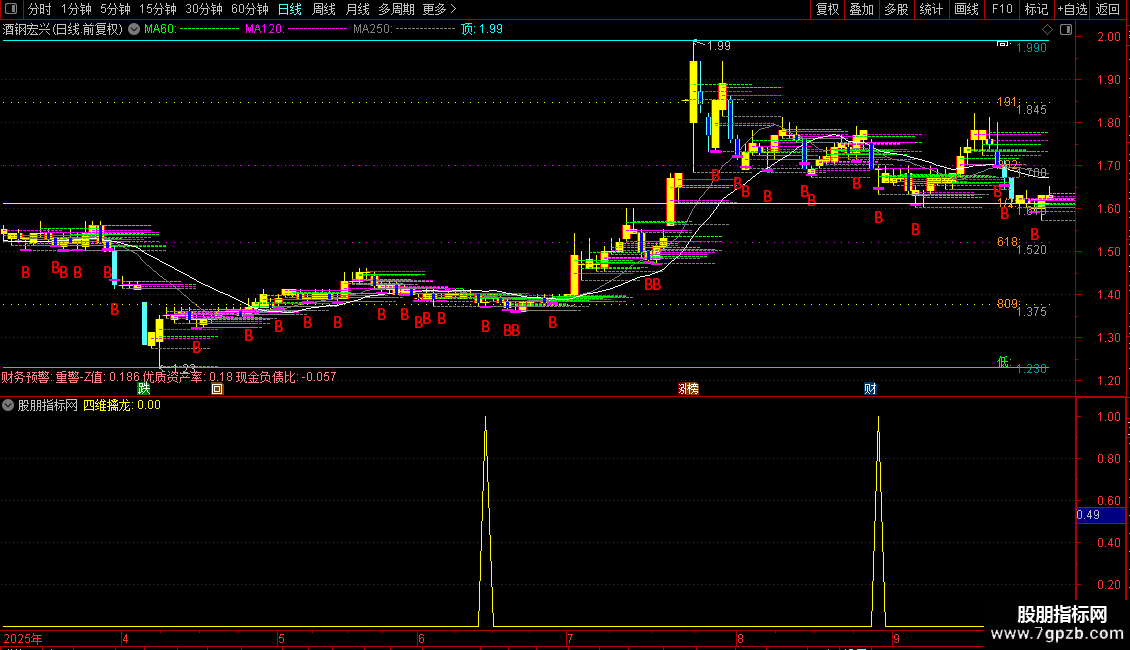 四维擒龙指标包含1个主图指标、1个副图指标和1个指标,无未来函数,适用于股票分析。
