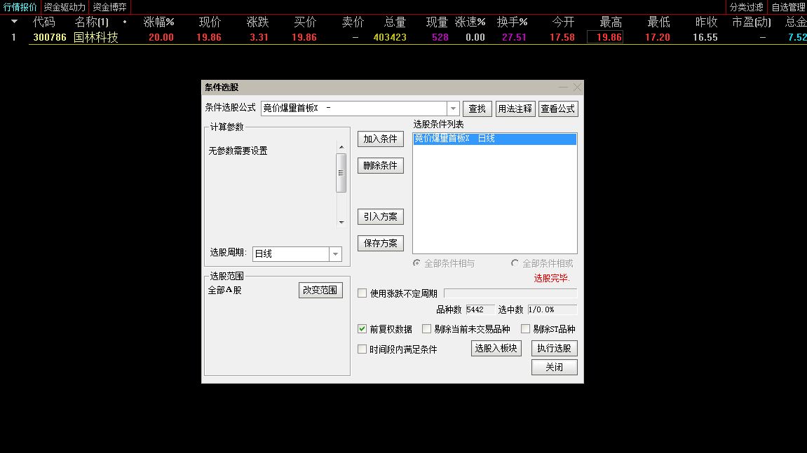 通达信【竞价爆量首板】副图/选股静态PK金钻出票信号少而精源码