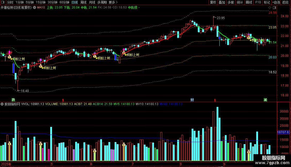 通达信〖蚂蚁上树〗股价突破上轨时提示信号 直观展示趋势转折点 主副图 源码