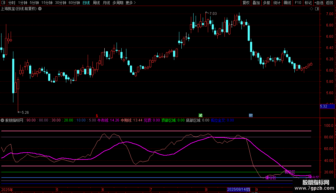 DRAWTEXT(CROSS(中期线,20),20,'低吸区'),COLORFF00FF;
