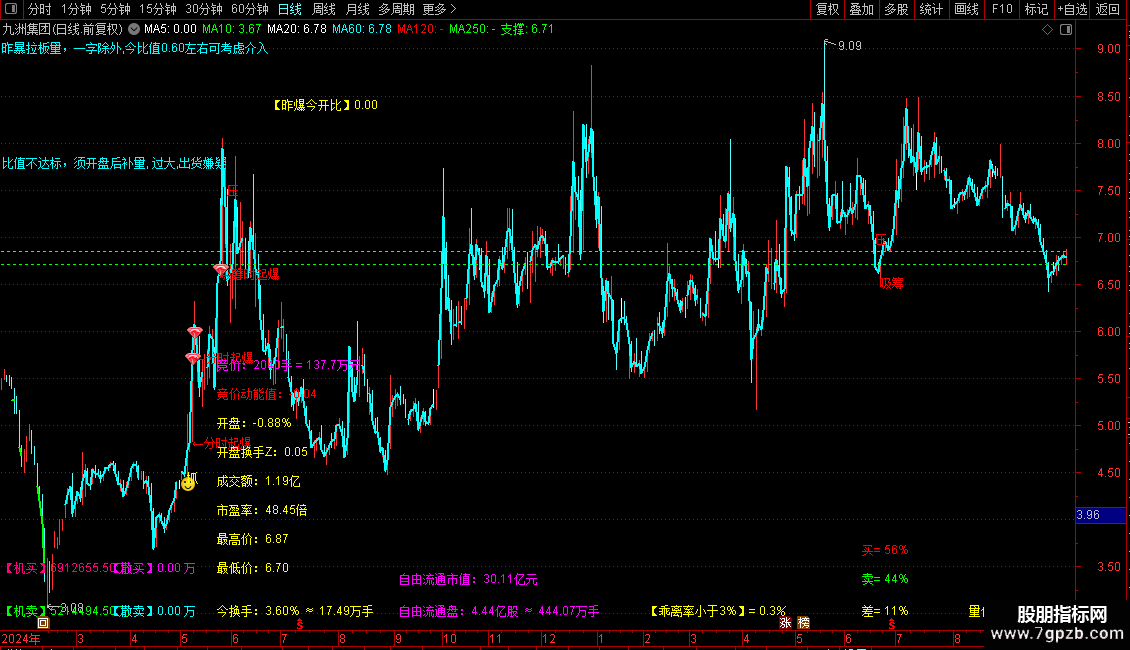 开盘换手Z赋值:开盘金额/开盘价/自由流通股本(股)*100