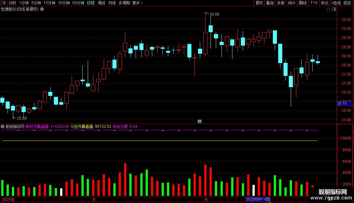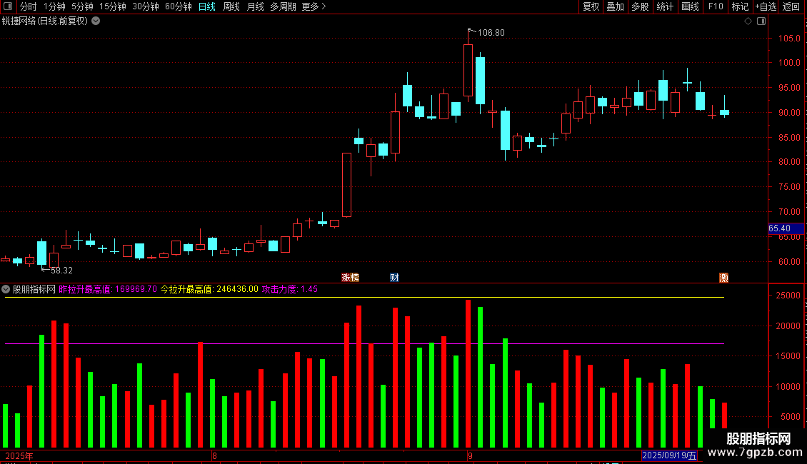 昨拉升最高值:CONST(REF(HHV(力度,FROMOPEN),239)),LINETHICK1,COLORMAGENTA;
