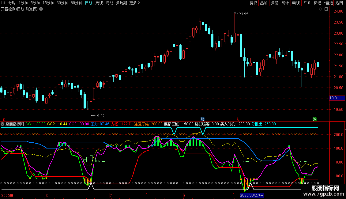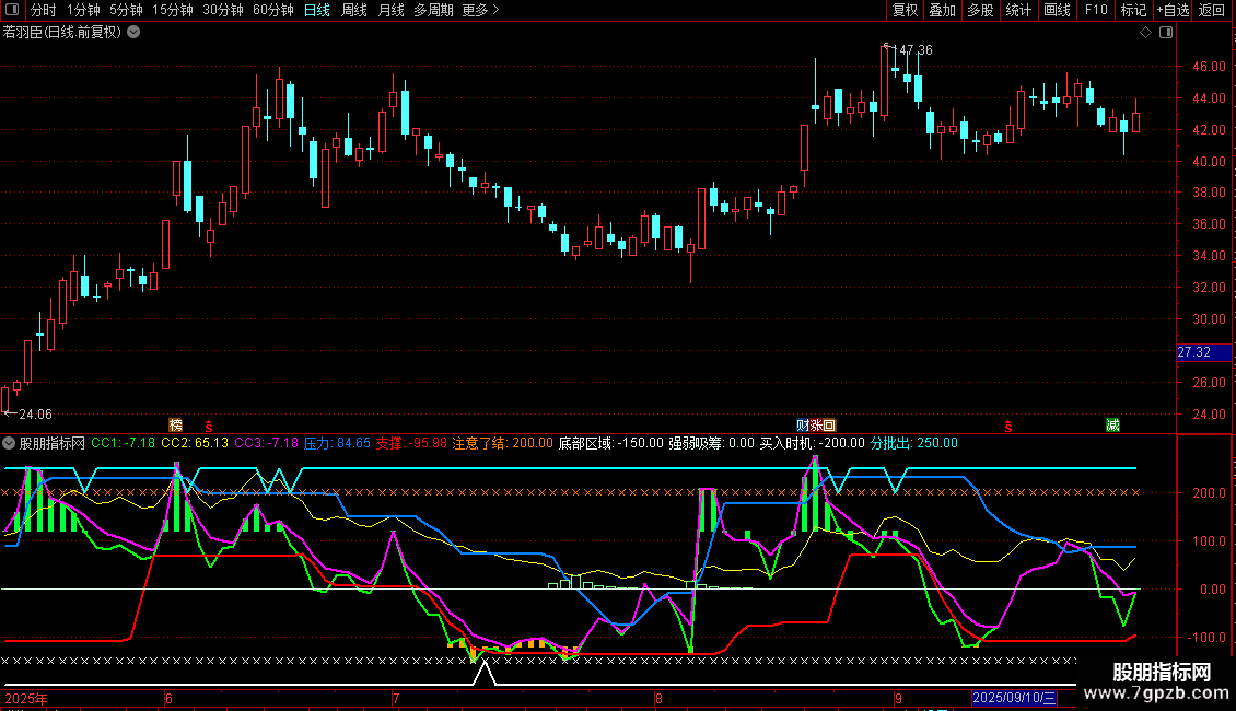 分批出:IF(CROSS(80,MM),200,250),LINETHICK2,COLORCYAN;
