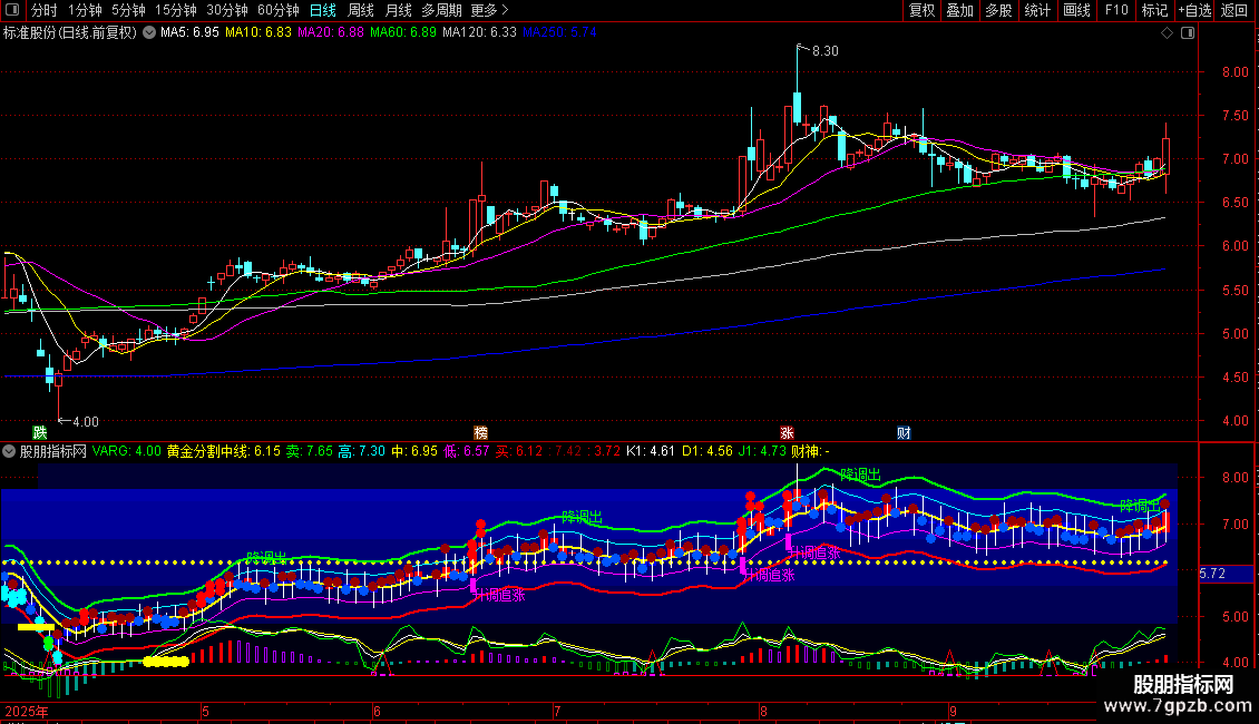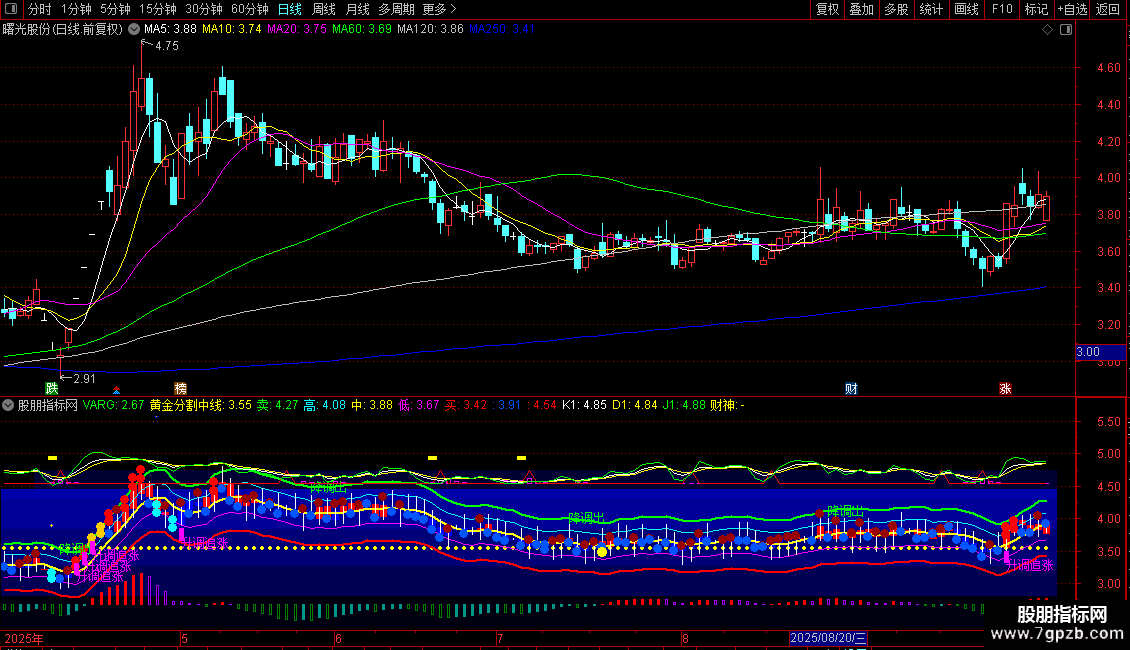 上中:=IF(1=1,低0+KJ*0.618,DRAWNULL),COLORMAGENTA,NODRAW;