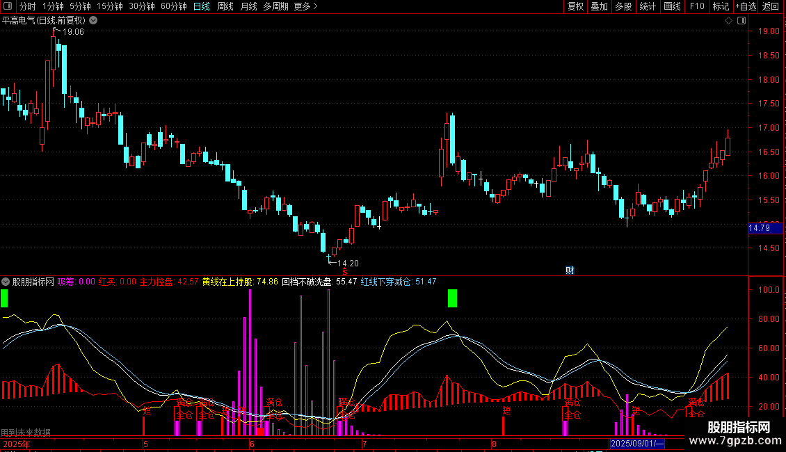 主力控盘: ((ZLC / (ZLC+ SHC)) * 100),COLORRED,LINETHICK1;