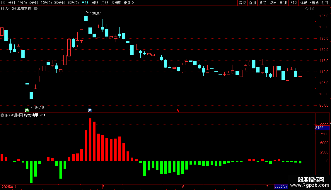 STICKLINE(控盘动量<0,控盘动量,0,2,0) ,COLORGREEN;