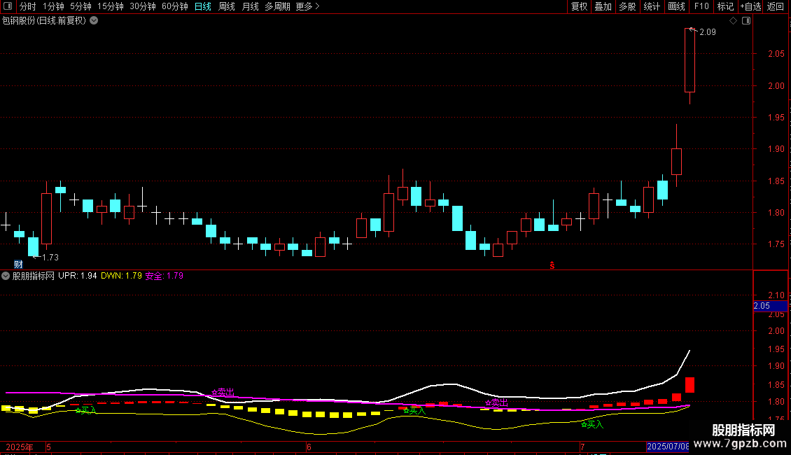 DRAWTEXT( CROSS(上线,下线),LOW *0.98,'☆买入' ),COLOR00FF00;