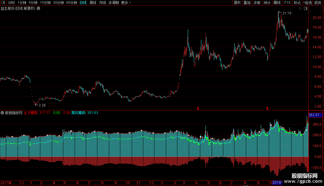 跟风筹码:SUM(DTGF,0)+30,LINETHICK1,COLORCYAN;