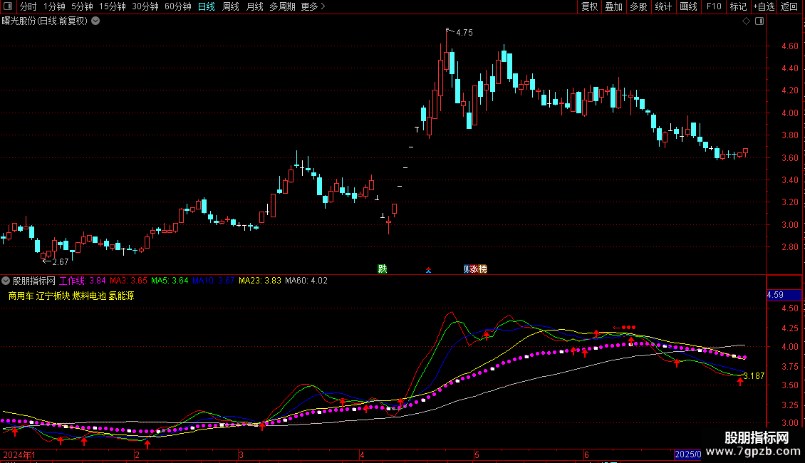 工作线:(EMA(C,40)),POINTDOT,LINETHICK5,COLORMAGENTA;