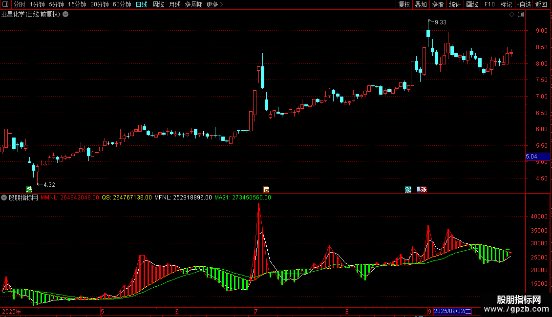STICKLINE(KL>=0,VAR5,MM,0.5,0) COLORRED;