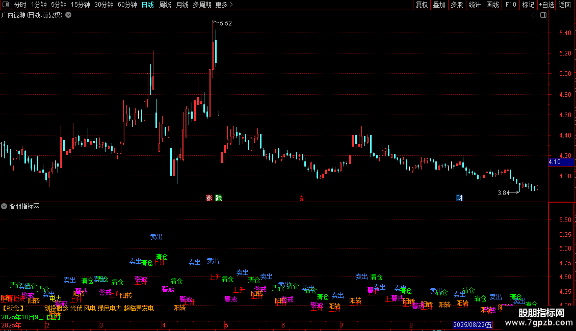 DRAWTEXT(FILTER(清仓信号=1,3),H*1.02,'清仓'),COLOR00FF00;