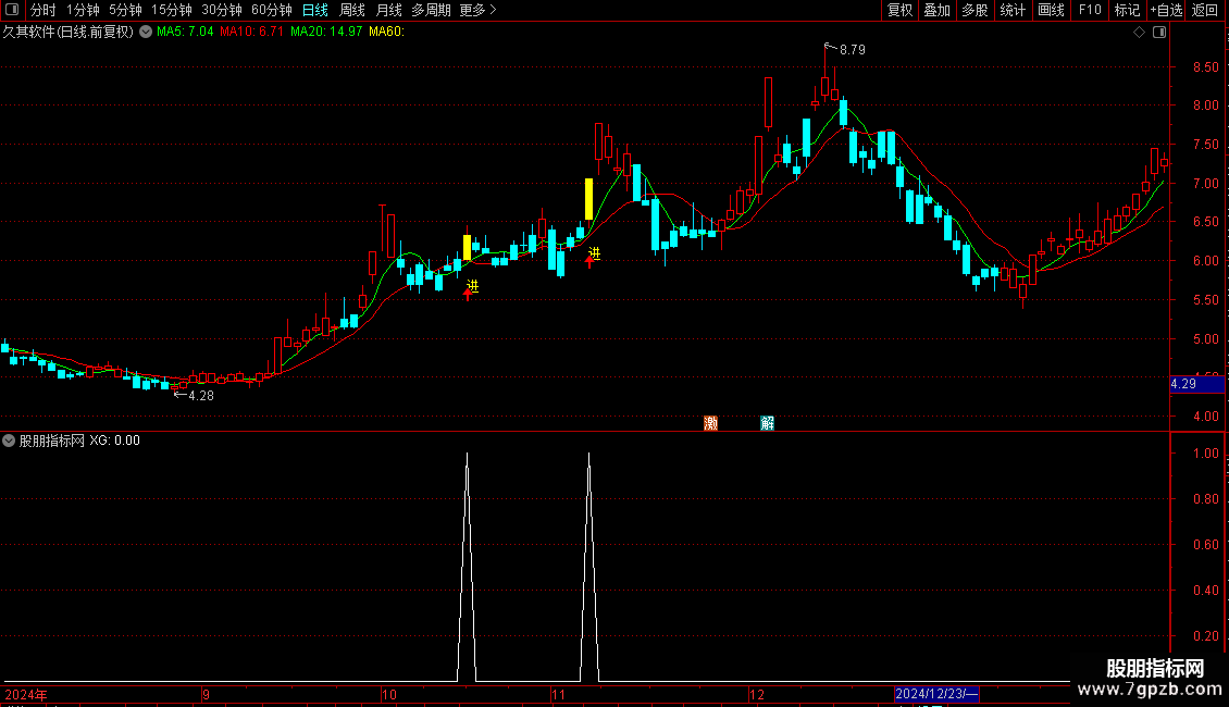买入信号K线:以黄色柱状图形式示出,是明确的买入信号。当该信号出现时,建议投资者在此时进行买入操作,以期在股价上涨前布局,获取投资收益。