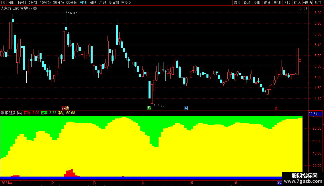 套牢: ( 100.000 - MA(A02,变量00)),COLORGREEN;