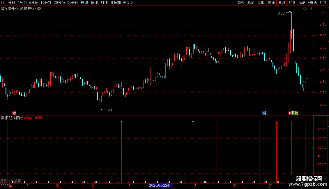 哈哈:IF(REF(TJ,1)=0 AND TJ>=1,80,10),STICK,COLORRED;