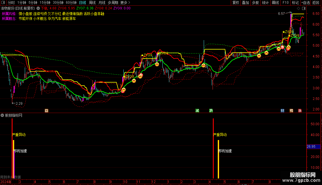 DRAWTEXT(FILTER(VART,15)=1,40,'严重异动')*VARG,COLORYELLOW;