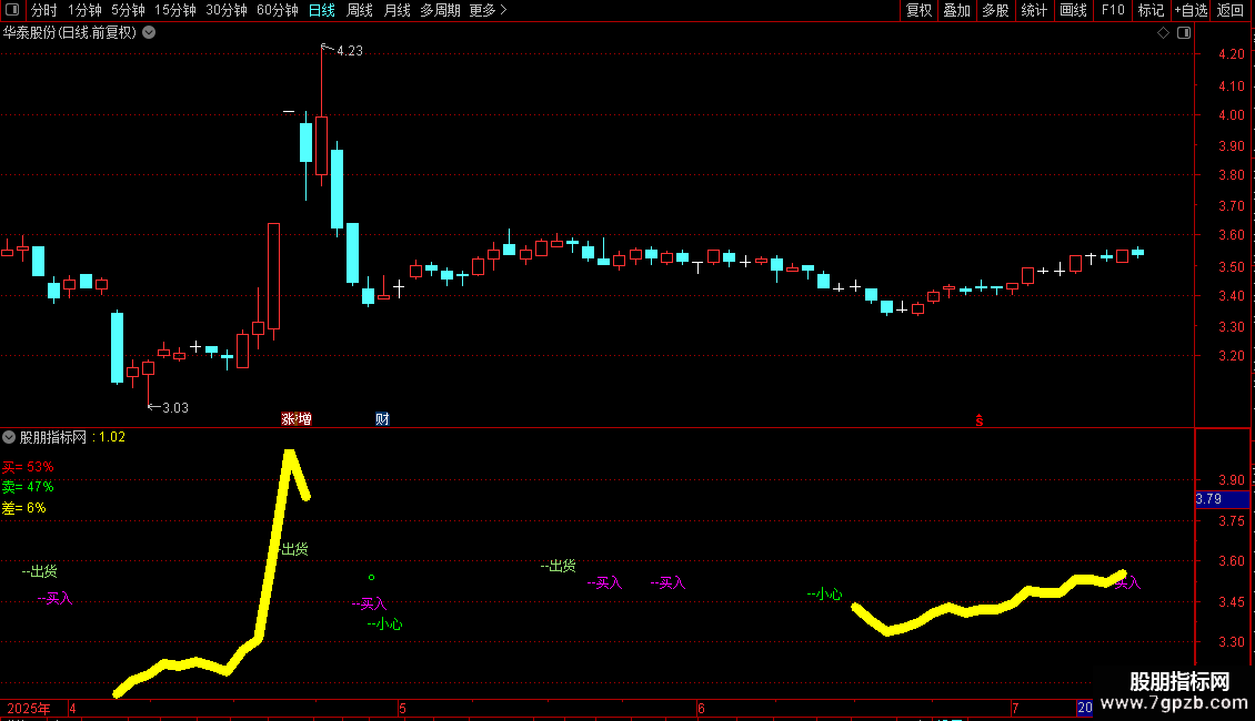 均价:=SUM(C*V,240)/SUM(V,240),COLORYELLOW,LINETHICK1;