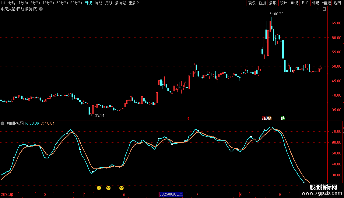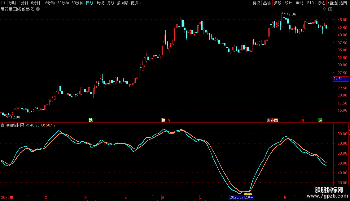 买入:=CROSS(J,D )AND CROSS(J,K)AND K <40 AND D<50 AND J<50;