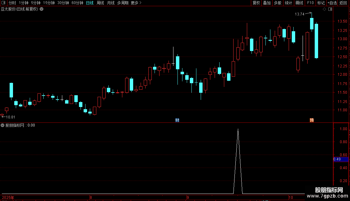 指标主要用于捕捉强势股回调后的二次买入机会。第一部分识别当日股价突破近期高点且收阳线的强势股,第二部分筛选次日回调但未跌破前日高点、维持上涨趋势的标的,同时排除ST股、科创板及高价股。操作策略为:当满足条件时,在股价回调至前日高点下方但高于前日收盘价时介入,结合量能配合更佳。