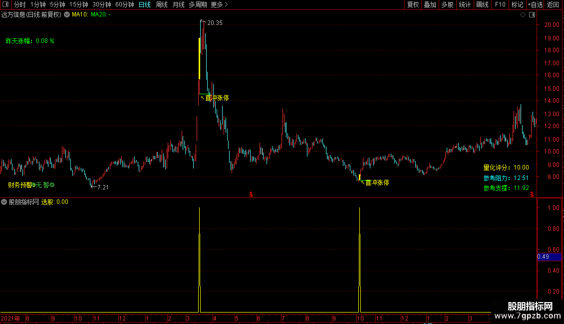 核心逻辑是:1.计算股价偏离34日均线的程度;2.设定动态支撑位;3.筛选收盘涨幅超4.8%、最高价等于涨停价且最低价未破支撑的股票。操作策略是关注黄色信号标记的个股,这类股票往往处于强势上涨阶段,但需结合成交量等指标确认有效性。