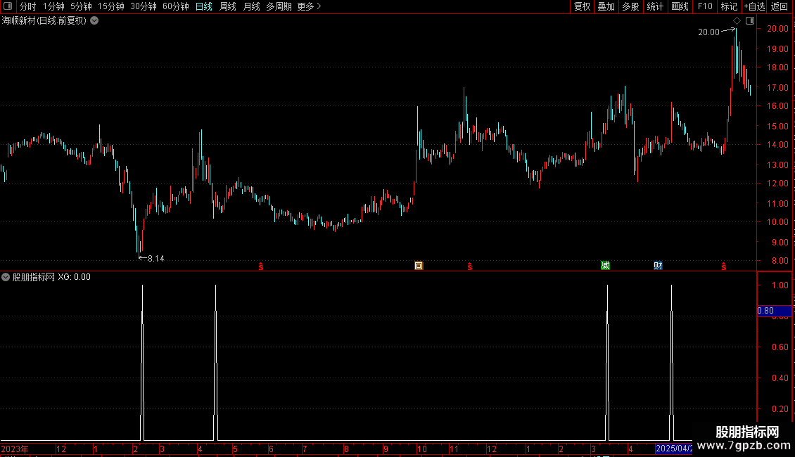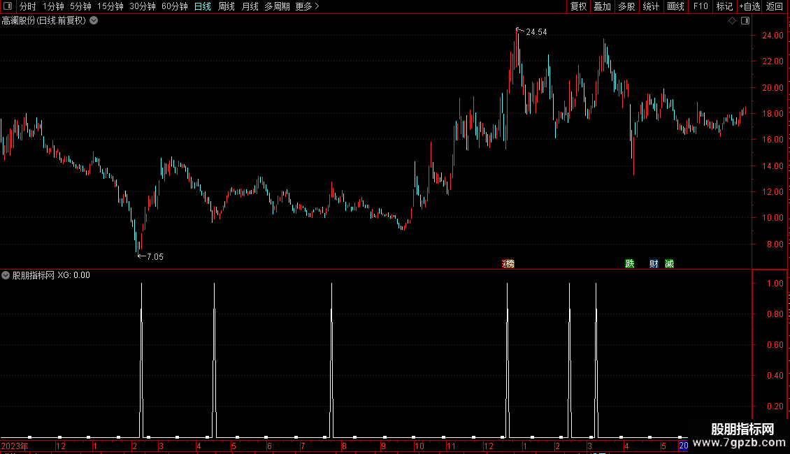 KDD:=REF(中期,1)<1 AND 中期>1;
