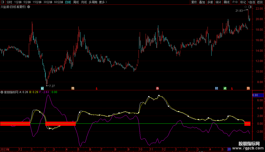 FX:=EMA(MA90-EMA((MA(R*ZL,2)/MA(ZL,2)-MA90),1),2);