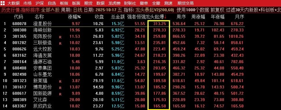 2、盘中排序:满足条件1)时,有盘感和短线经验的朋友9:26之后输入.401进入排序界面-按F8刷新-点击龙头起爆就可以从大到小排出今天实时的强弱顺序,按龙头起爆非涨停前3、周序在前30名内的未涨个股中选择K线形态较好总涨幅和今天涨幅都不大的潜力股买入,没有合适的别勉强(没有大盘系统性风险时,盘中排序尽量在9:26到10点左右进行,在大盘和个股分时低位买入,买点涨幅尽量在5%以内,没有盘中选股经验者请用盘后排序)