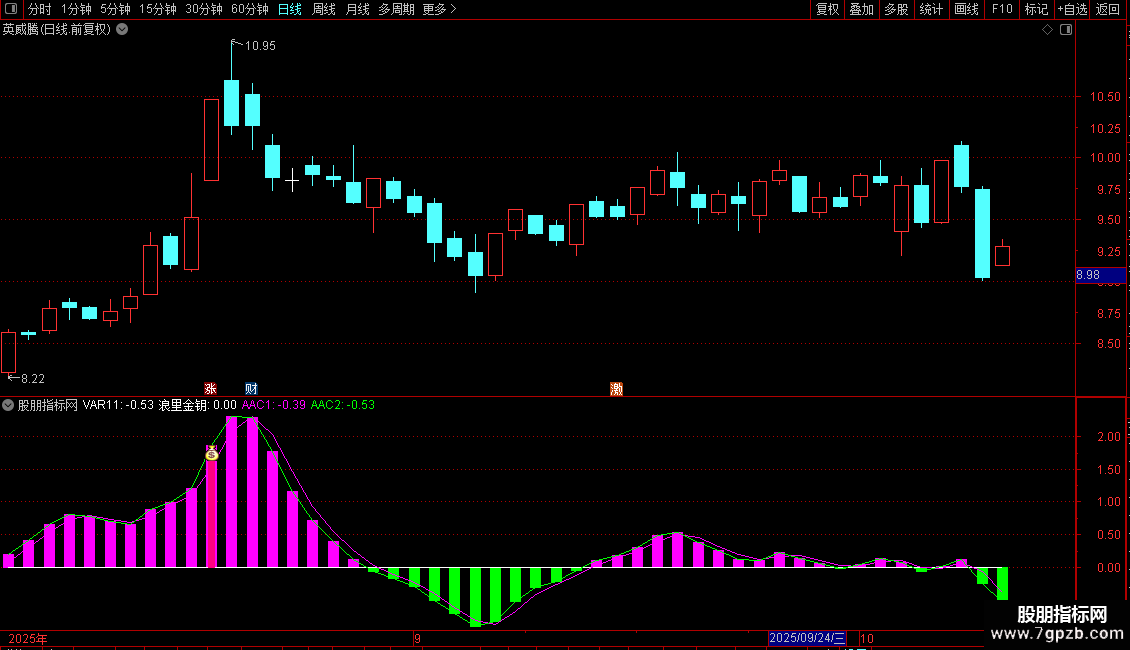 STICKLINE(VAR11>=0,VAR11,0,2,0),COLORMAGENTA;
