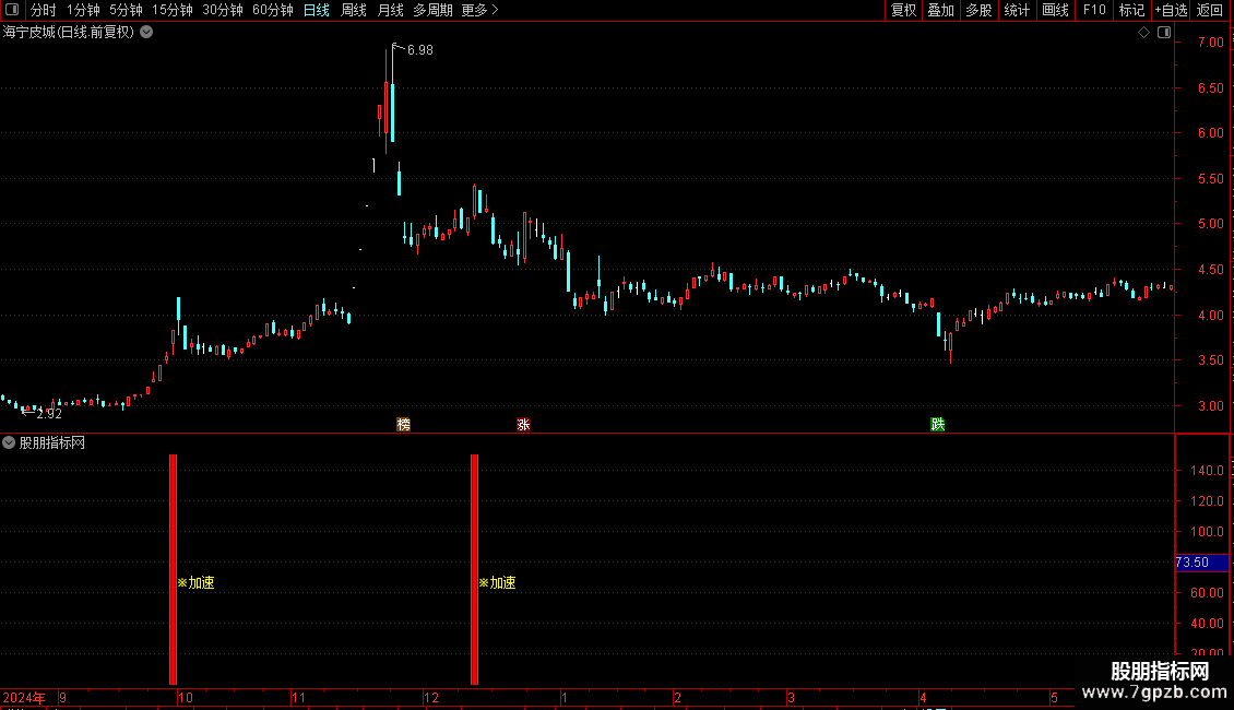 1.游资加速指标用于下跌阶段的游资资金突然入场拉出一根大阳线,大有反转拉升的趋势,同时MACD和RSI伴随着拐点向上或金叉。