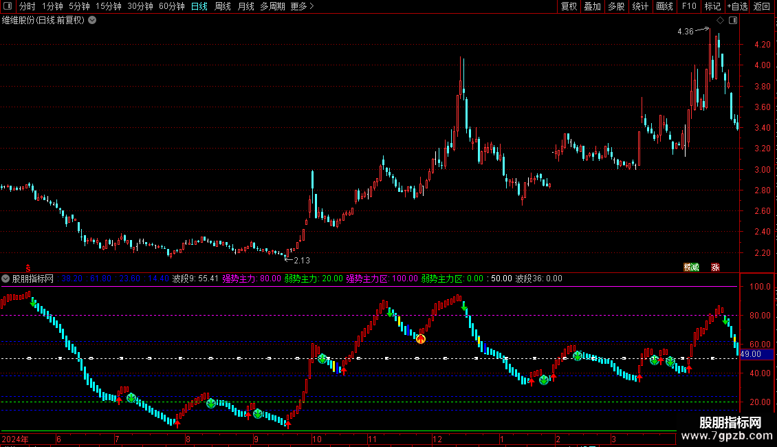 很好:=IF(波段19&&波段3,80,100),COLORGREEN,LINETHICK2;
