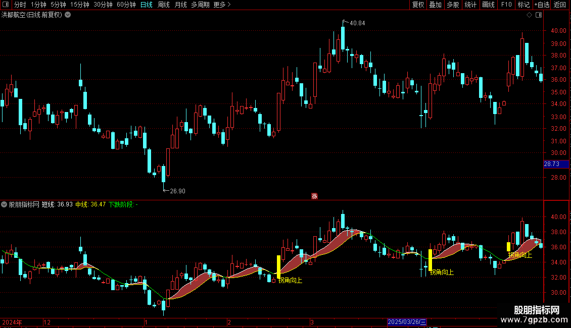下跌阶段:IF( VAR2=VAR7, VAR7,DRAWNULL),COLORGREEN;