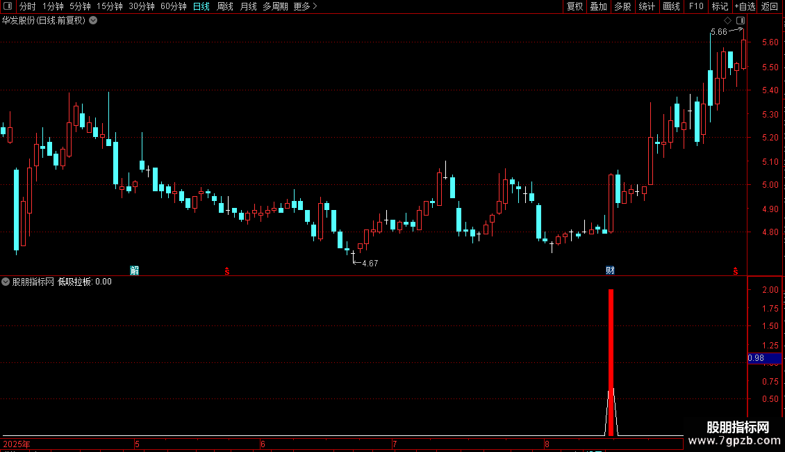 1.低吸拉板指标将低吸与拉板信号融合是量能与走势共同选择,涨幅达到5%的时候会出信号,所以盘中预警使用更合适。