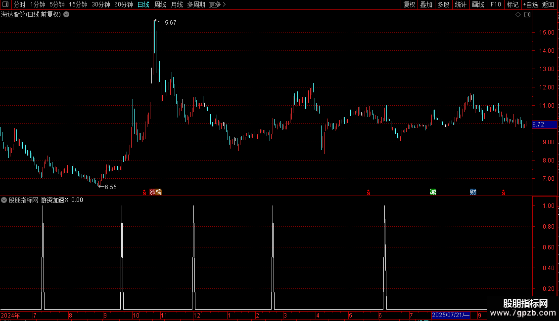 XG7:=(((CLOSE-MA(CLOSE,24))/MA(CLOSE,24))*100);