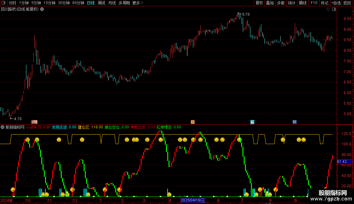 果断出击:IF(CROSS(端庄窝,0.01),18,0),STICK,COLOR0000CC,LINETHICK2;