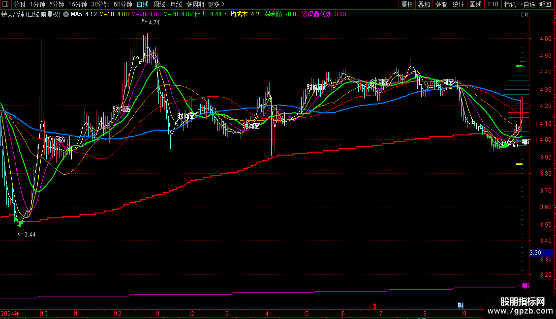 获利值:(CLOSE-COST(50))/COST(50)*100,COLORGREEN,NODRAW;