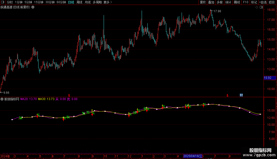 优:买 AND MA5>REF(MA5,1),COLORYELLOW,POINTDOT,LINETHICK0;