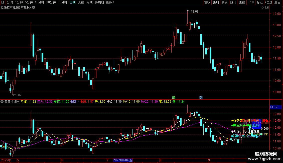 低吸:IF(CURRBARSCOUNT<=N/2 AND CROSS(平衡,LOW),1,DRAWNULL),COLORFF8899,NODRAW;