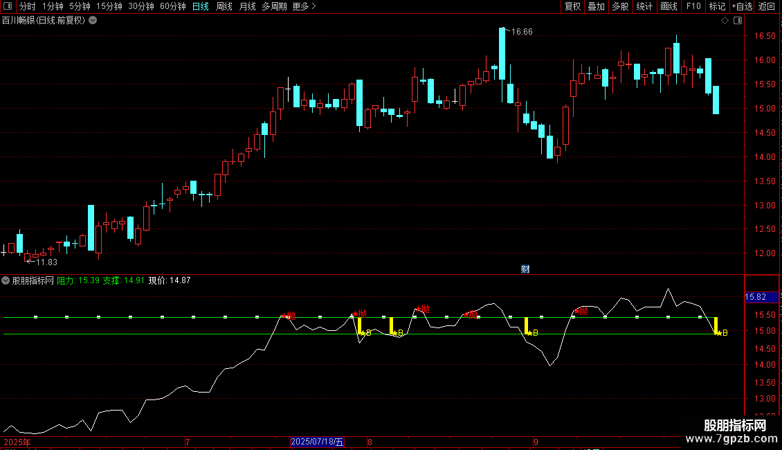 STICKLINE(CROSS(支撑,现价),支撑,阻力,1,0),COLORYELLOW;