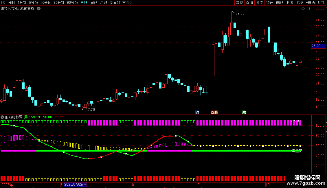 周J:MA("KDJ.J#WEEK"(9,3,3) ,5),COLOR00FF00,LINETHICK2;
