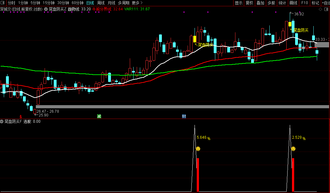 通达信【尾盘阴买】尾盘T+1 阴买超短思路主副图/选股套装源码