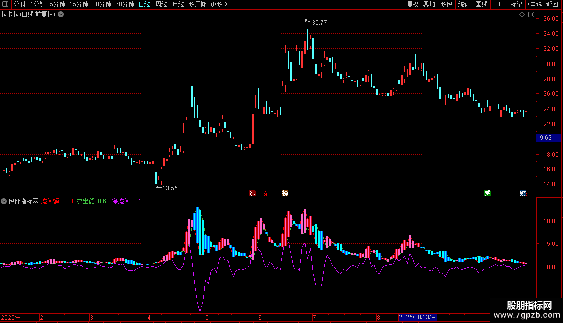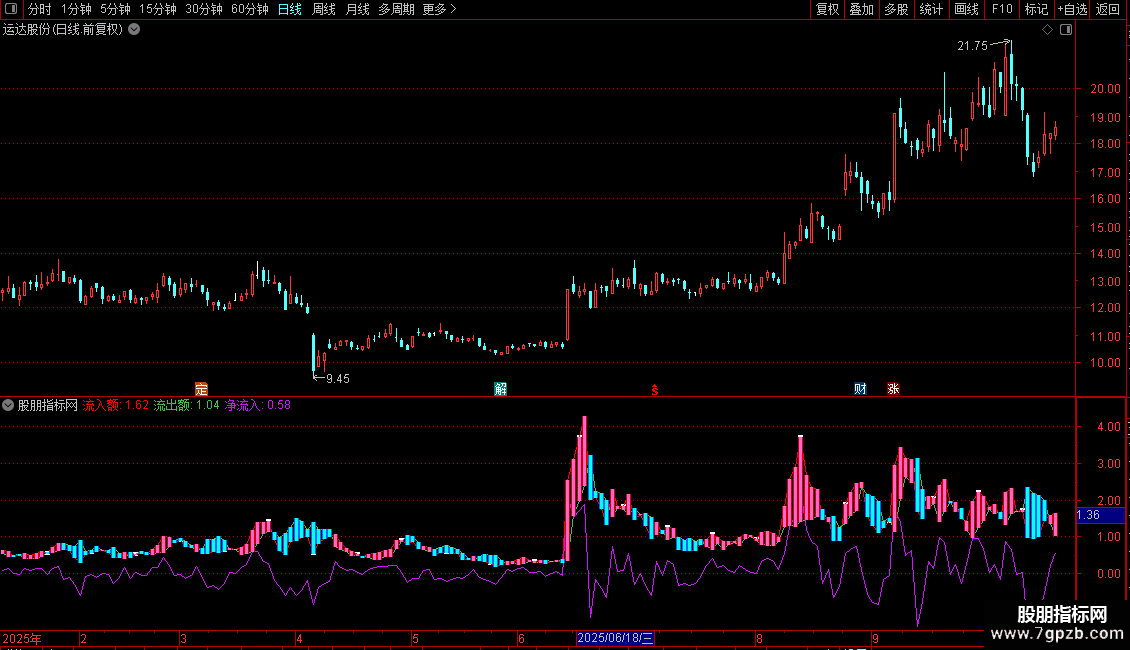 操作策略:当红色流入柱持续放大时考虑买入,绿色流出柱占优时注意风险,柱状图宽度变化反映资金博弈强度。净流入线可作为趋势延续的辅助判断依据。