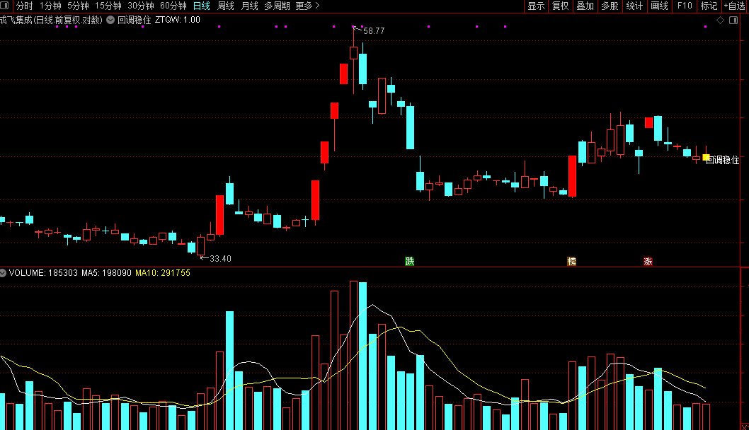 当股价出现涨停后,在随后几个交易日内出现先缩量回调、再放量企稳的形态时,可以考虑买入。具体表现为价格回调时成交量萎缩,企稳时价格回升但成交量相对减少。