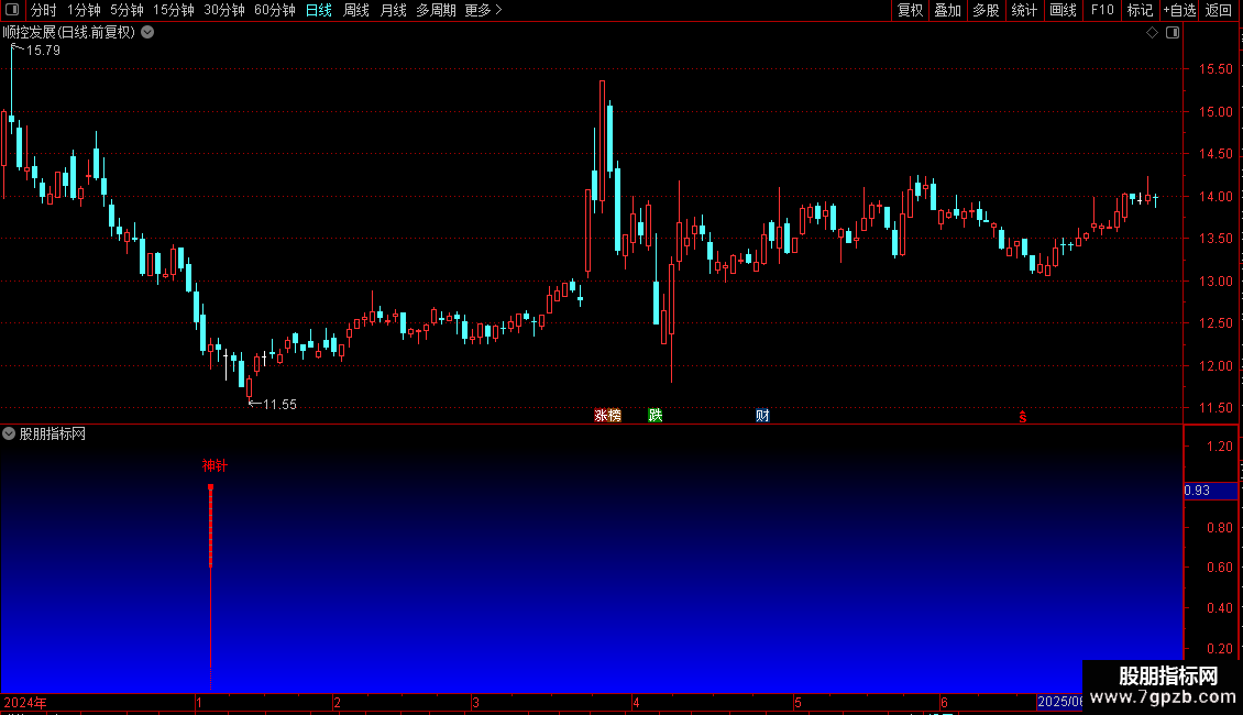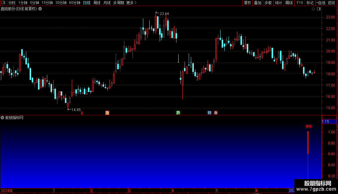 DRAWTEXT(CURRBARSCOUNT=CONST(SJ)+2,1.1,'神针'),COLORRED;