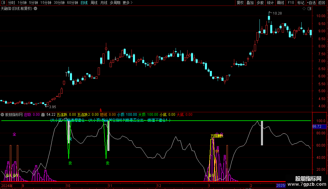 DRAWTEXT ((趋<7.2) AND 庄吸>26 AND 庄吸<38,78,'全'),COLORFF00FF;