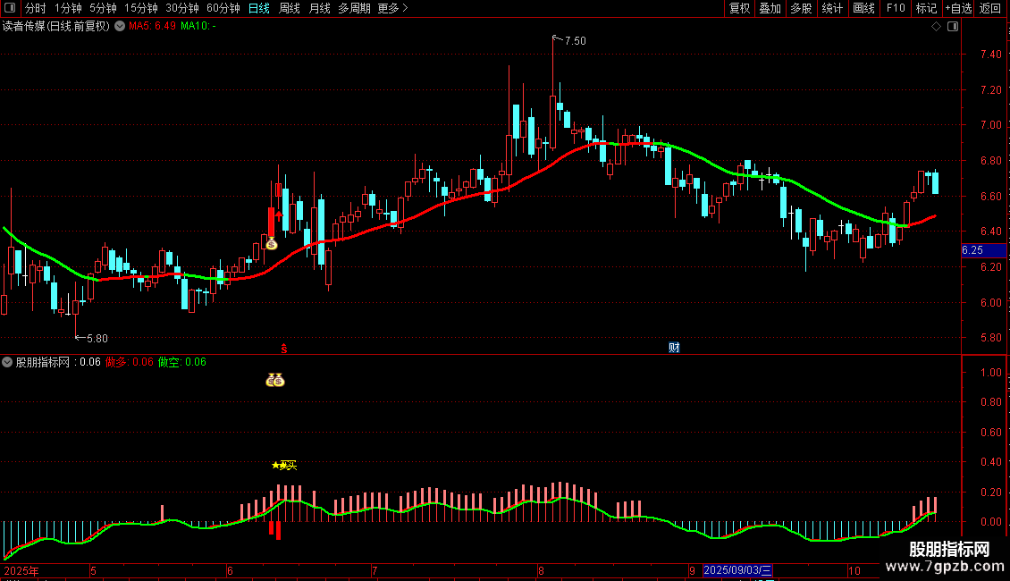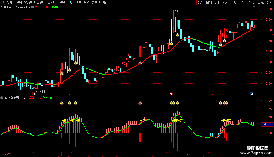 ◦ 副图共振:当副图中的红色量能柱出现,同时伴随钱袋子图标,与主图信号形成共振,这是趋势启动的进一步加强信号。